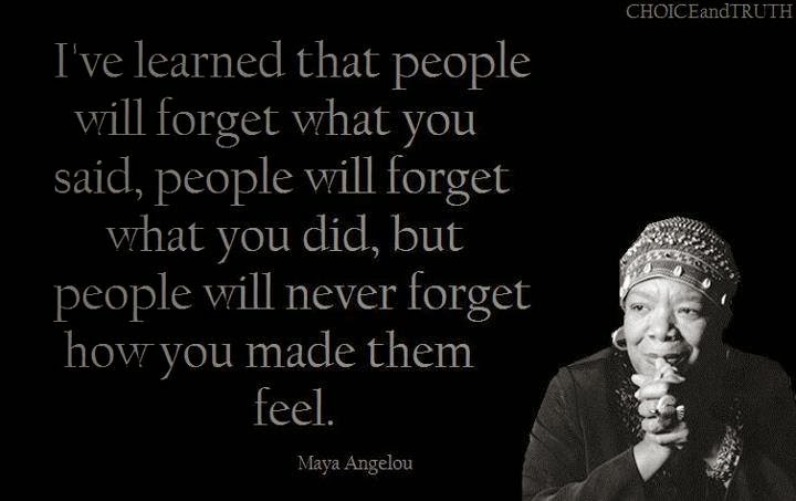 Today Maya Angelou passed away. I have been deeply touched by how many people have taken time to pay tribute to this woman. Some people have the ability to make us love them without ever having met them. Maya was that sort of lady. I think this quote explains it perfectly.